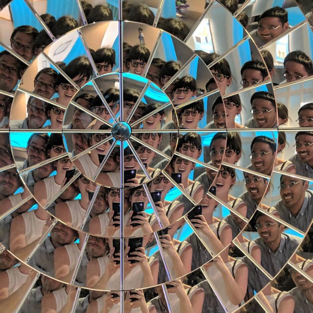 The mirror reflects the movement of children in front of it with partial and integrated reflections, which makes it a wonderful visual stimulus