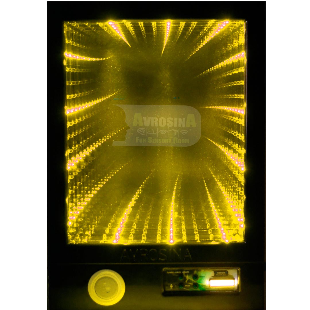 الجهاز يحتوى 4 الوان ليد مختلفة ( الازرق – البرتقالى – الاخضر – الاحمر ) فجهاز النفق يعمل من خلال 3 برامج مختلفة البرنامج الاول للتنقل بين 15 تاثير للاضائة يختار بينهم الطفل والبرنامج الاخر هو برنامج مخصص للالوان به 5 اختيارات يتنقل الطفل بين كل لون وامكانية تشغيل الالوان جميعا والبرنامج الاخر للصوت حيث يحتوى على ٢٠ تاثير صوتى مختلف يمكن تغيرهم وبرمجتهم كما يريد المدرب والاختيار مابين ( أصوات – اغانى – موسيقى …..الخ وذلك من خلال تغيرها فى كارت الميمورى المضاف الى الجهاز حيث يخرج الصوت الى الغرفة كلها من سماعة مكبرة بداخل الجهاز ويمكا ايضا التحكم فى مقدار ارتفاع او انخفاض الصوت والضوء من خلال 7 مستويات يتحكم فيهم المدرب وتم تزويد الجهاز بلوحة تحكم تاتش لسهولة التعامل مع الجهاز ويمكن ايضا غلق الجهاز من خلال كلمة سر تحسبا لعبث الاطفال فاذا يعمل الجهاز على تنمية المهارات البصرية وطول الانتباه والتركيز وايضا على تفاعل الصوت مع الاضائات وتنمية المهارات السمعية ويمكن استخدامه فى الاسترخاء عند تشغيل موسيقى بموجات الفا او انواع الموسيقة المريحة للاعصاب . مزود الجهاز بنظام تبريد حيث يسمح له بالعمل حتى 200 ساعة متواصلة فهو مفيد جدا للغرف الحسية وله خصائص متعددة تجعله فى صدارة الاستخدام فى الغرف الحسية