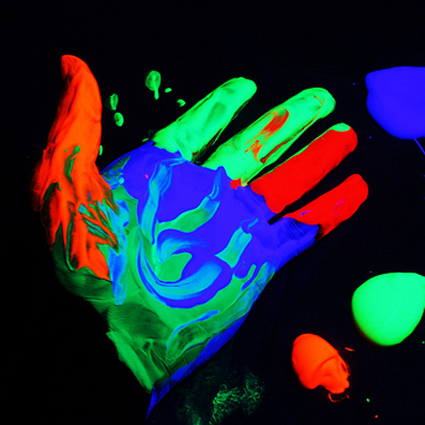 وتنتج تاثيرات بصرية واضحة وقوية فى الغرفة الحسية وايضا فى الغرفة السوداء فيمكن الرسم او دهن الادوات والاشكال فتكون وسيلة جذب للاطفال واستثارة حسية بصرية قوية